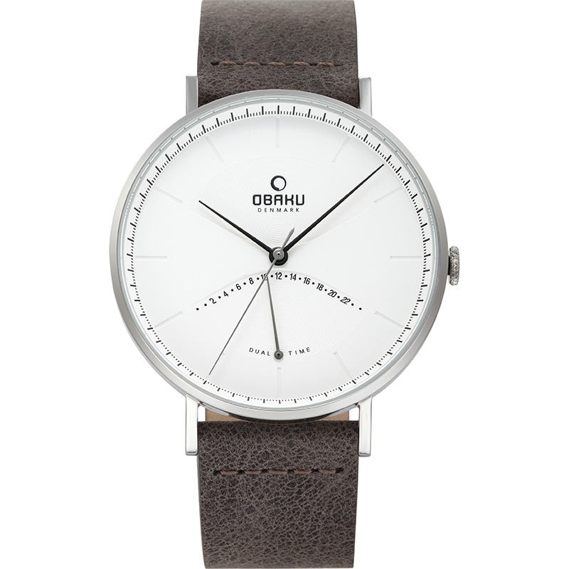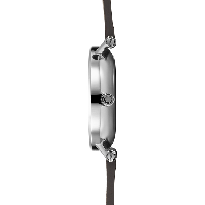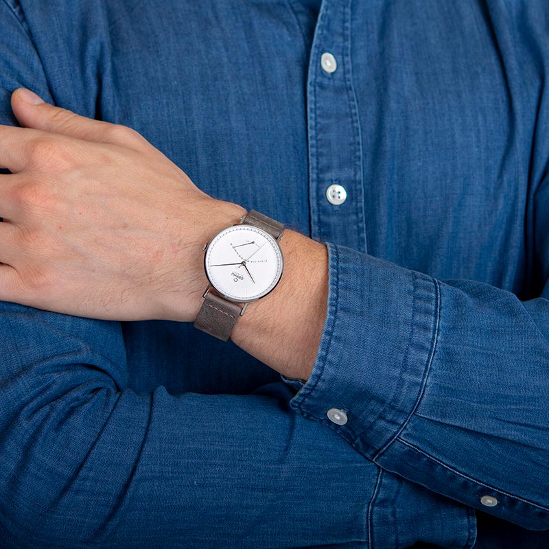 Our Elm Clay timepiece is a classic discreet and timeless dual time watch that will be a graceful detail to any outfit. The long slim hands elegantly point out the time and the sub dial discreetly lets you know what time it is somewhere else in the world. The timepiece features a white dial with black hands that are complemented by the steel case surrounding it along with a dark brown calf leather strap – emphasizing the luxuriousness in the materials and design created by the Danish designer Lau Liengård Ruge.
