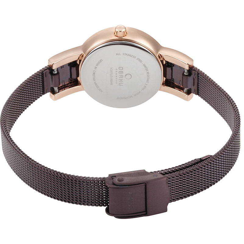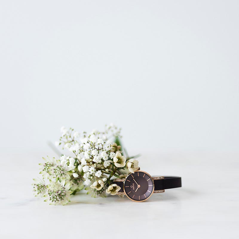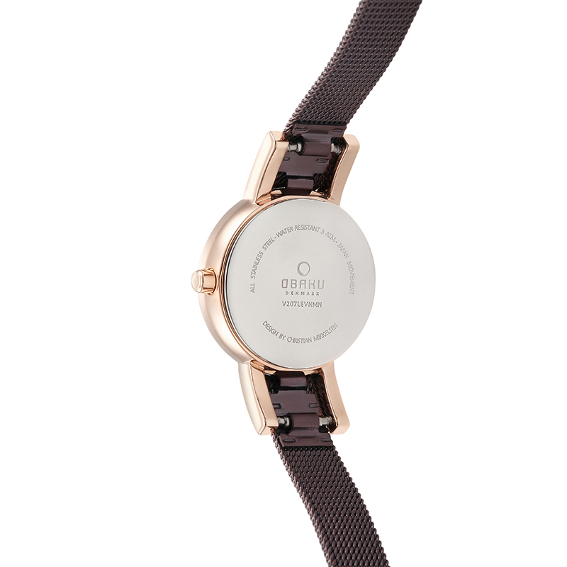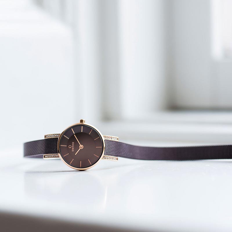 The Lykke Walnut associates to the feeling of happiness by its name. It is a beautiful design composited by the Danish designer Christian Mikkelsen. It features a dark brown dial surrounded by a rose gold coated case and a dark brown coated stainless steel mesh bracelet with Swarovski crystal embedded locks as a great and feminine detail to the design. Our Lykke Walnut is the perfect combination of high quality materials and a unique design.