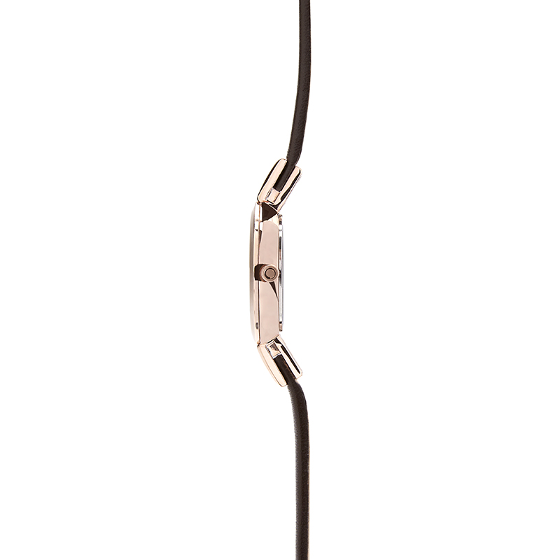 Those who wear Siv Hazel will experience its ability to complete an entire outfit by its natural grace and beauty. The colors compliment any wrist and the materials symbolizes high quality and an innovative timepiece design. The dial is silver-white coated and it is surrounded by a warm rose gold coated steel case rose gold coated hands and a luxurious dark brown calf leather strap. The design is lovingly made by the Danish designer Lau Liengård Ruge.