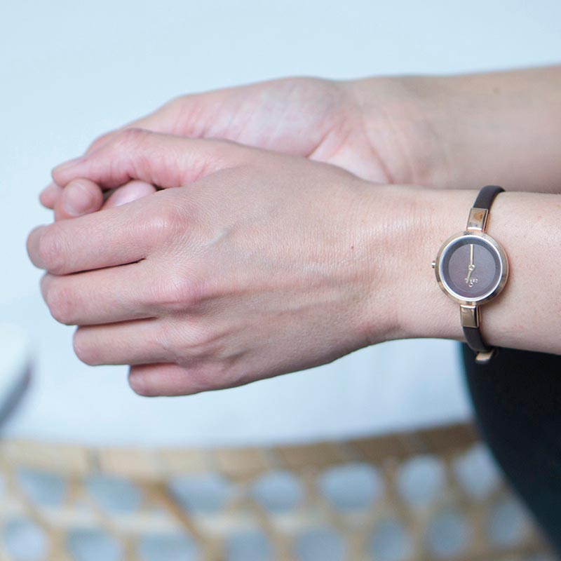 The nature has inspired the Danish designer Lau Liengård Ruge to create the Siv Walnut – an elegant timepiece design with natural colors. The Siv Walnut has a beautiful dark brown dial that is surrounded by a dark brown coated stainless steel mesh bracelet and a warm rose gold coated steel case and rose gold coated hands. The timepiece is a gorgeous design tribute to the nature.