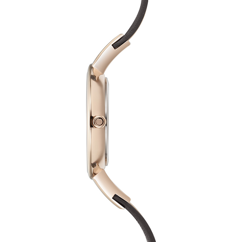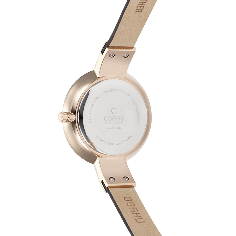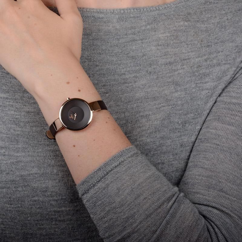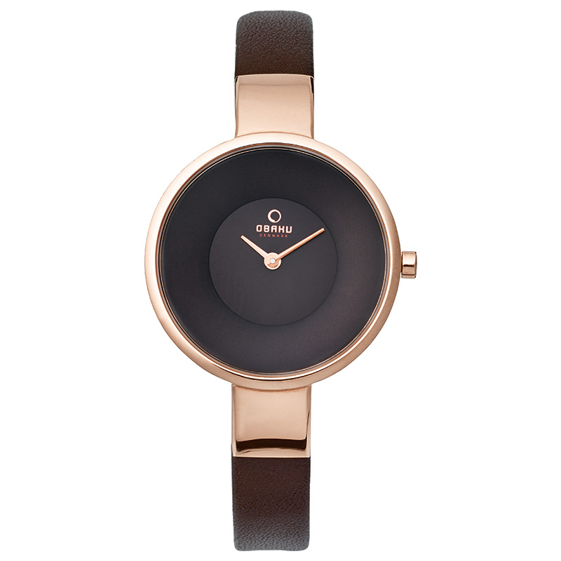 Rose gold is flattering on any wrist as it has a warm and flush appearance whether you dress casually or are going out for a special occasion. This stunning rose gold Obaku jewelry watch comes fitted with a beautiful brown dial and a leather strap bracelet. This watch expresses the beauty of Danish minimalist design traditions where the look is made to last. The case back is engraved with the name of the Danish designer of this watch Christian Mikkelsen who adores perfection. Go feel the smooth curves!