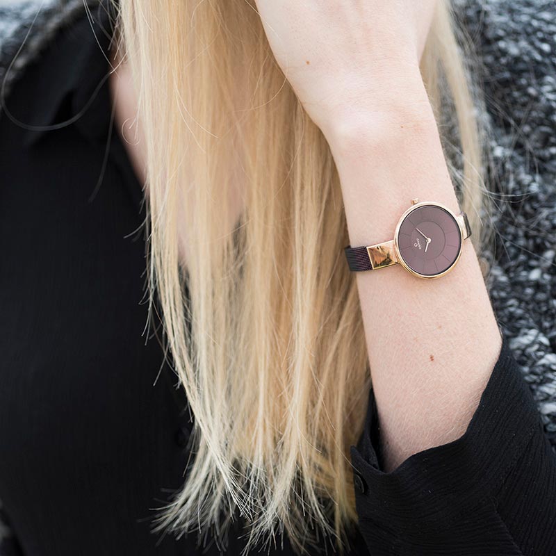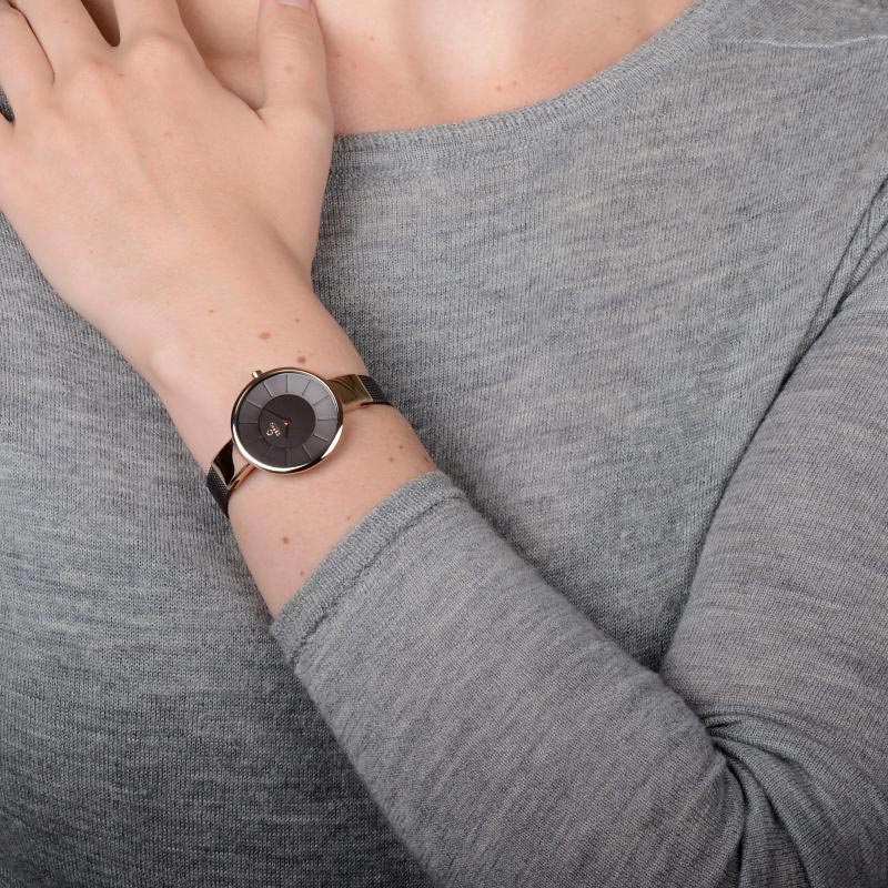 “Sol” is the Danish word for sun which is the perfect synonym to the Sol Walnut because of its warm colors that are combined into a beautiful watch design made by Danish Christian Mikkelsen. It features a dark brown coated stainless steel mesh bracelet and a dark brown dial that is complemented by a rose gold coated steel case – making it the perfect timepiece for the modern woman who adores warm and enlightening colors.