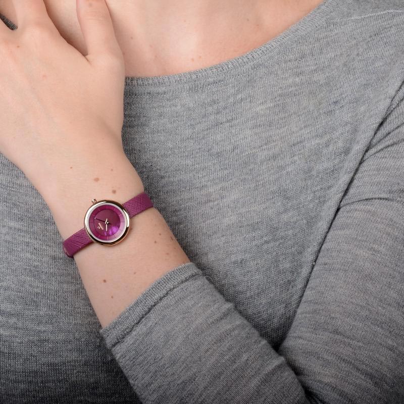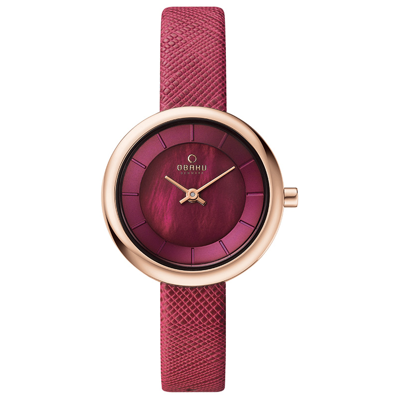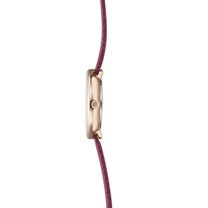 The Stille Cherry is the perfect timepiece for the woman who adores an elegant design combined with strong colors. The Stille Cherry watch has a cherry red calf leather strap that is complimented by a spectacular red mother of pearl dial and a rose gold coated steel case. Additionally the hands are rose gold coated which highlights the beautiful contrast between the colors red and rose gold. The design is made by the Danish designer Christian Mikkelsen and will stand the test of time by its elegance and grace.