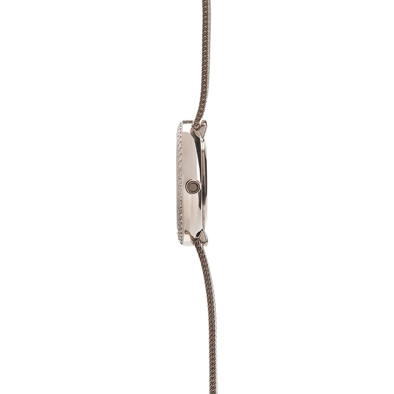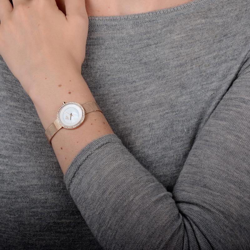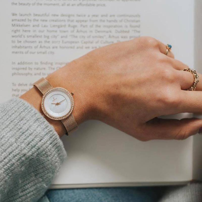 The Stille Glimt Rose is lovingly designed by the Danish designer Christian Mikkelsen. The timepiece has a rose gold coated stainless steel bracelet a rose gold coated steel case with Swarovski crystals and an elegant white mother of pearl dial. Stille Glimt Rose calls for the modern woman who appreciates a classic design in modern colors and with a feminine touch.