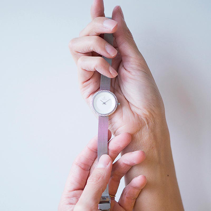 The Stille Glimt Steel is the perfect timepiece for the woman who wants to make a statement by elevating her look with a touch of sophistication. Stille Glimt Steel is a beautiful combination of a stainless steel mesh bracelet a silver-white coated dial with spectacular Swarovski crystals embedded. It is both classic timeless and perfectly minimalistic which makes it easy to match with any outfit. Our timepiece is lovingly designed by the Danish designer Lau Liengård Ruge.