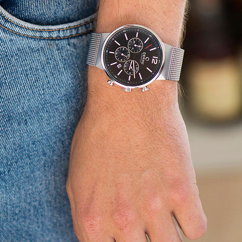 The Storm Onyx is a classic yet very detailed timepiece that appeals to the modern man who appreciates a masculine design. Our watch features a chrongraph movement and several smaller dials embedded along with an elegant date function and black-white coated hands that complement the black dial. The dial is surrounded by a stainless steel case and a stainless steel mesh bracelet – making the timepiece both classic detailed and timeless.
