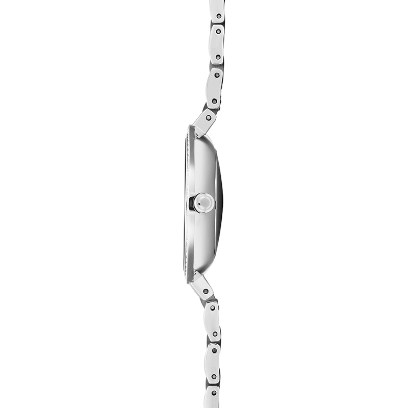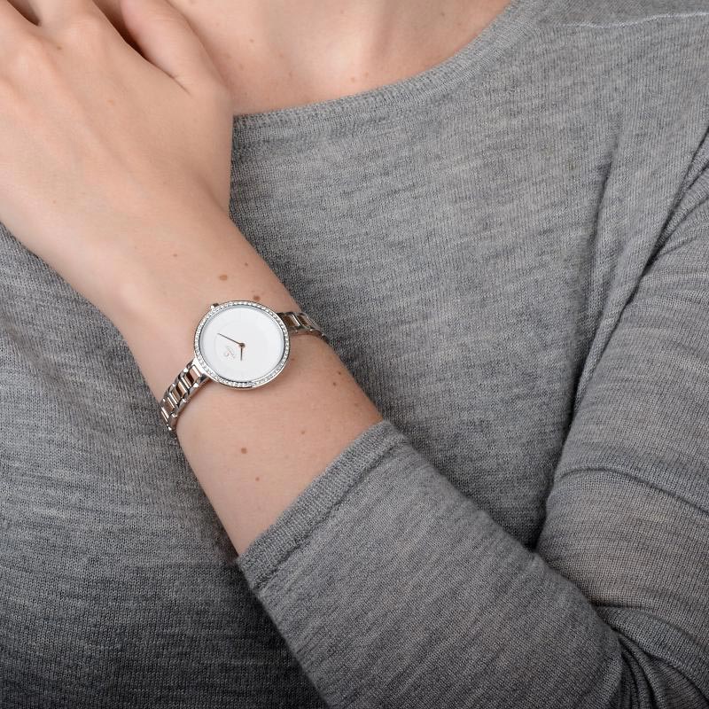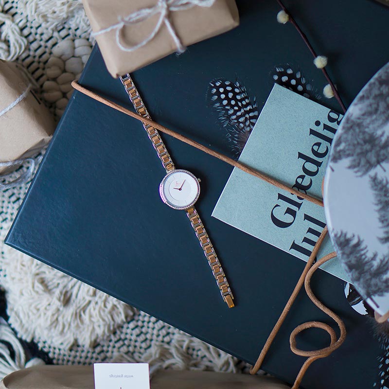 The Frost Peach timepiece is an elegant feminine and beautifully detailed watch that features Swarovski elements in the stainless steel case along with a white dial and rose gold coated hands that matches the delicate silver-rose gold coated stainless steel link band bracelet that surrounds the frame. Our Frost Peach is perfect for the woman who adores elegance and a loving design created by the Danish Christian Mikkelsen.