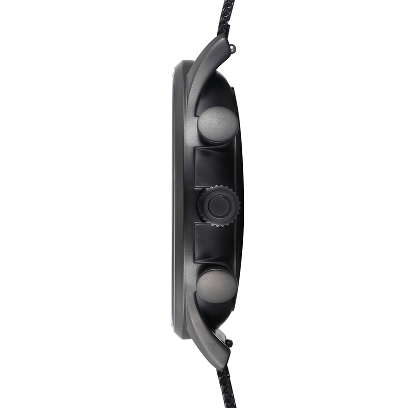 The Gran Charcoal is a Danish designed dual-time timepiece created by Christian Mikkelsen. It features a black coated stainless steel mesh bracelet a black dial and a dual-time movement surrounded by a black coated steel case. The dial is complemented by two additional smaller dials and steel coated hands – creating the perfect detailed yet neutral timepiece for men.