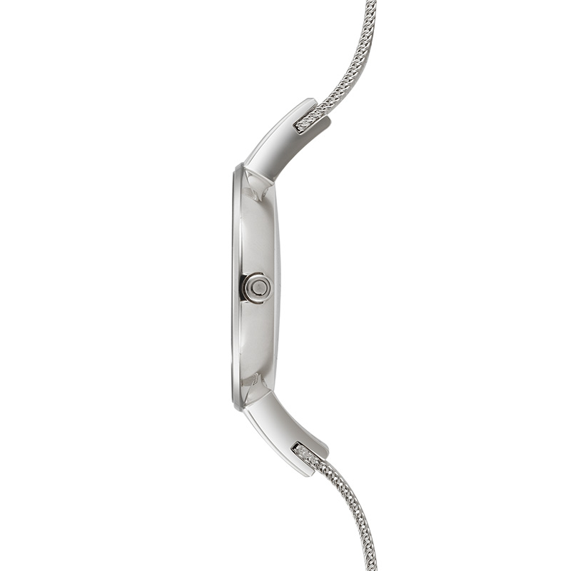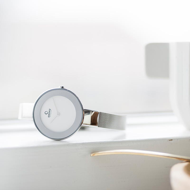 The Himmel Steel is a minimalistic yet graceful design that appeals to the modern woman. The steel case with the white dial complements the stainless steel mesh bracelet by its color composition and high quality materials – making it the perfect watch for the conscious woman designed by the Danish designer Christian Mikkelsen.
