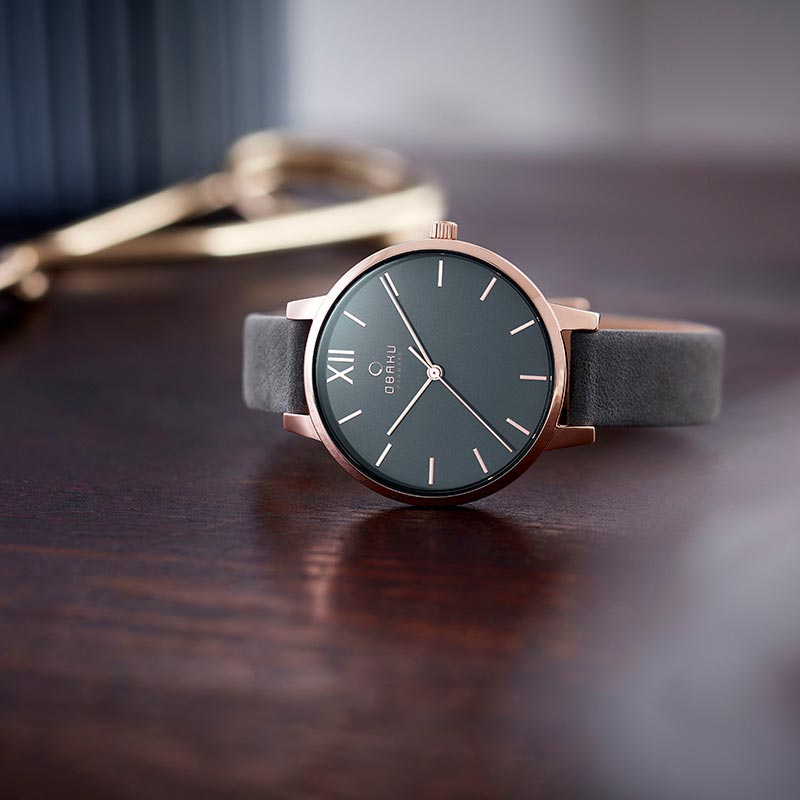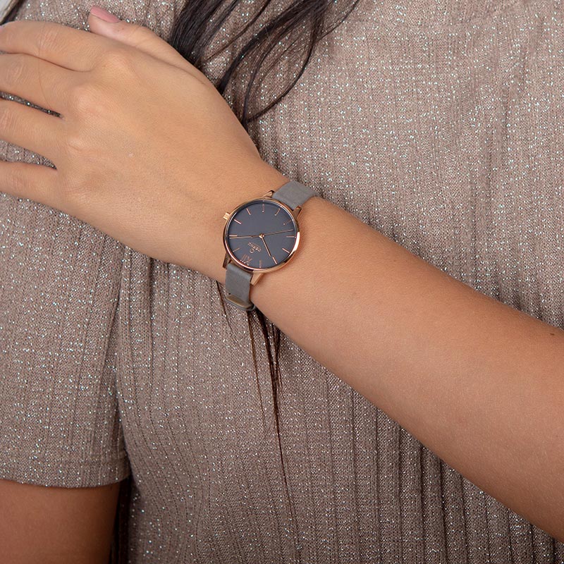 The Liv Pebble symbolizes life by its name and unique expression. It is the perfect timepiece for the woman who wishes to wear a classic design in a modern reinterpretation within colors and materials. Our Liv Pebble features a grey dial with rose gold coated hands and a single Roman figure to emphasize the beauty and function in the dial. The case is rose gold coated steel which is encircled by a luxurious grey calf leather strap that complement the design perfectly.