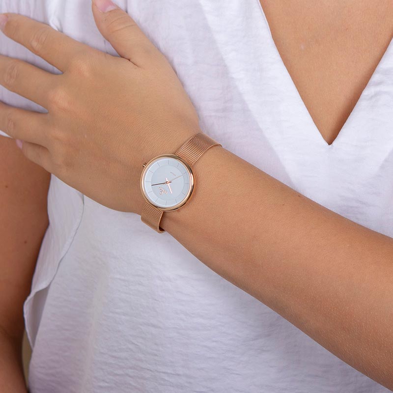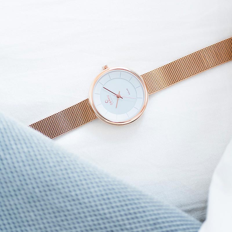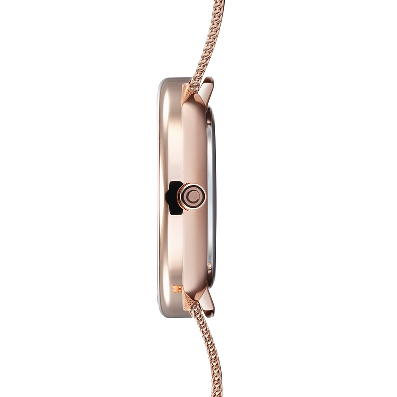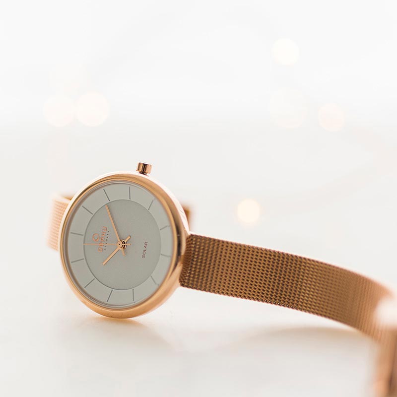 The Lys Rose is a simple design combined with functionality. The timepiece is solar powered and is a unique combination of high quality materials. The Lys Rose features a rose gold coated stainless steel mesh bracelet with a rose gold coated case and a white dial. The design is made by Danish Christian Mikkelsen who has created a timepiece design that appeals to the modern woman who adores the color rose gold and simplicity.