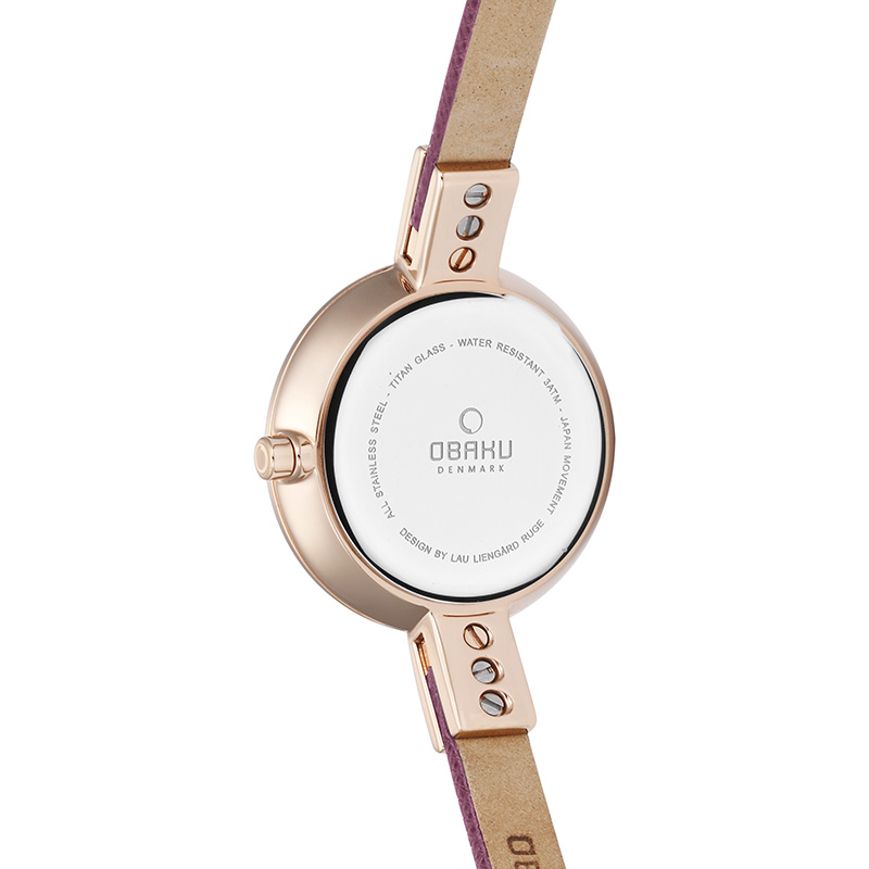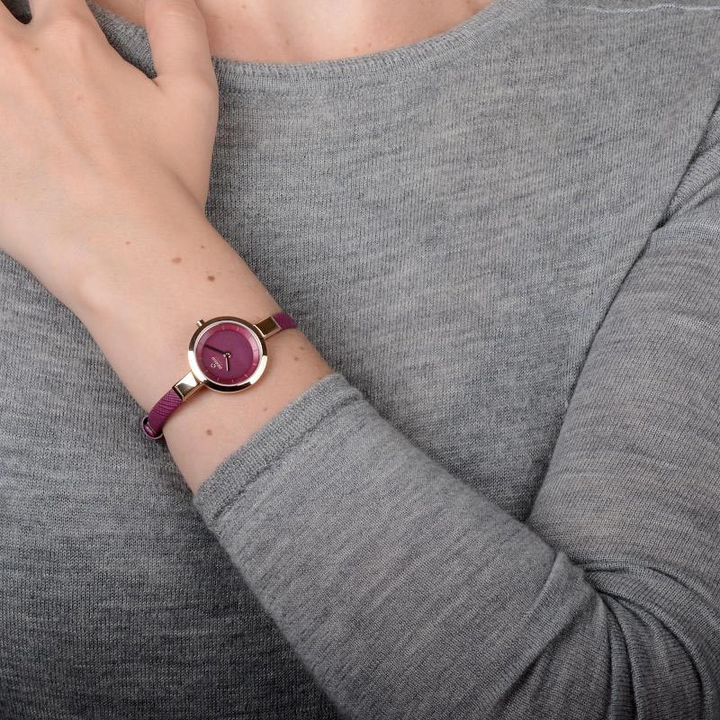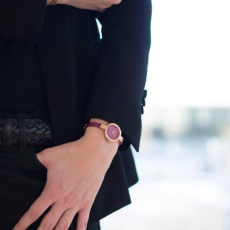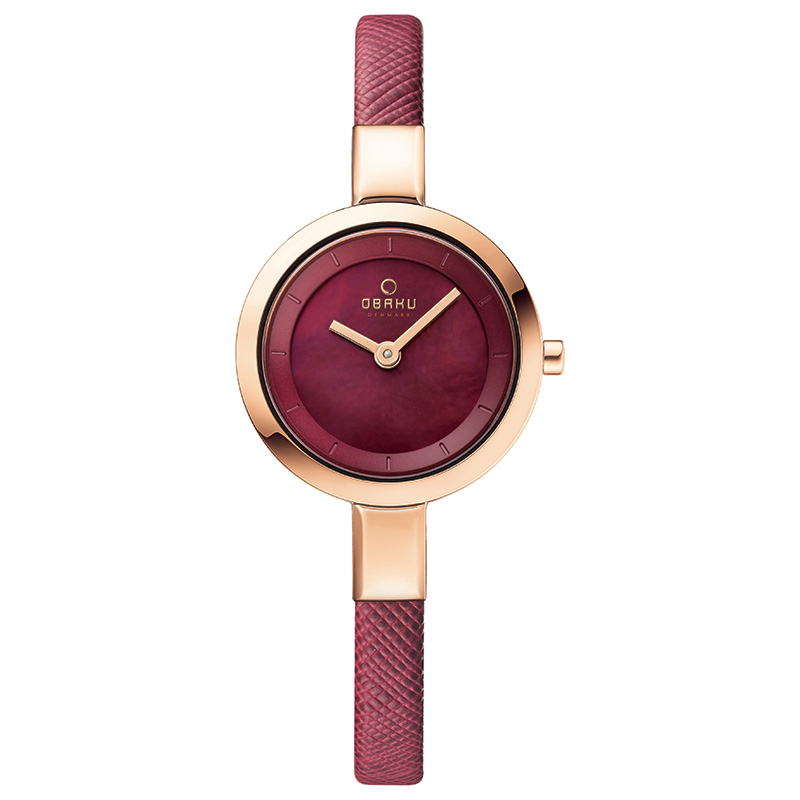 The Siv Cherry is a Danish design watch created by Lau Liengård Ruge. The timepiece is characterized by its beautiful color coordination combining a rose gold coated steel case with a dark red mother of pearl dial and a dark red calf leather strap that creates an exclusive expression.