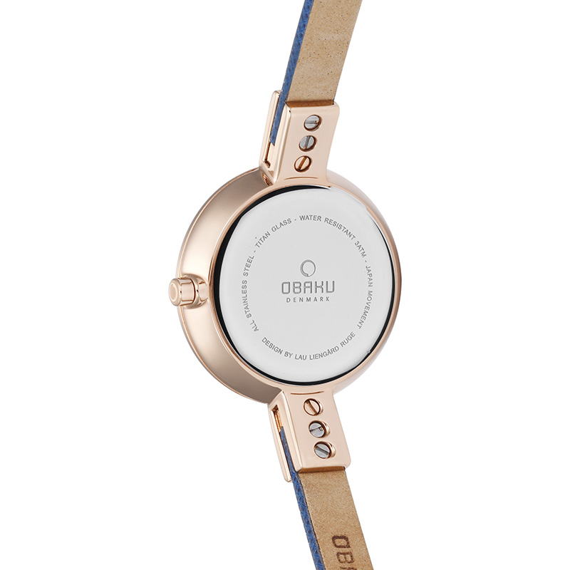 The Siv Navy features a spectacular blue color that is gracefully combined with a rose gold coated steel case and rose gold coated hands that complements the blue mother of pearl dial and the blue calf leather strap that is prominent on the timepiece. The colors are elegant timeless and durable on any outfit at any time of the day. Designed by Lau Liengård Ruge this watch will stand the test of time.