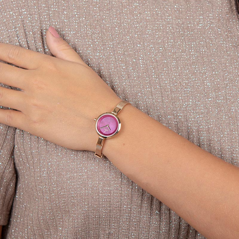 The Siv Ruby timepiece is an extravagant design for the conscious woman who appreciates a luxurious design. The Siv Ruby combines a dark red mother of pearl dial and a rose gold coated steel case with a rose gold coated stainless steel mesh bracelet which expresses a confident and beautiful design made by the Danish designer Lau Liengård Ruge.