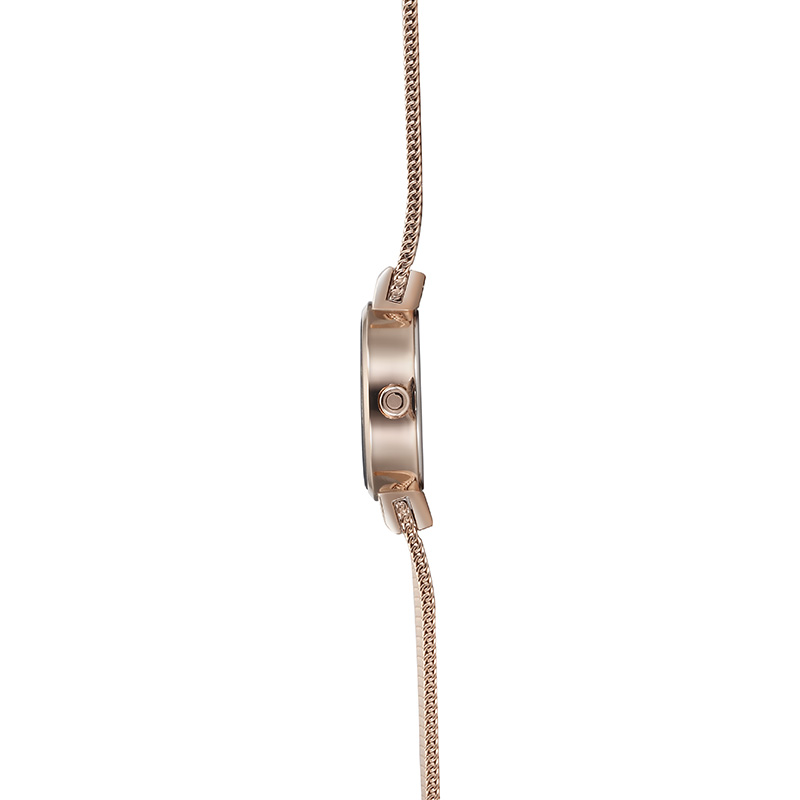 The Spire Azure is a petite feminine yet powerful timepiece that is made from a rose gold coated stainless steel mesh bracelet a rose gold coated steel case and a beautiful dark blue dial that complement the rose gold color. Our Spire Azure will add an elegant and sophisticated expression to any woman by its composition created by the Danish designer Lau Liengård Ruge.