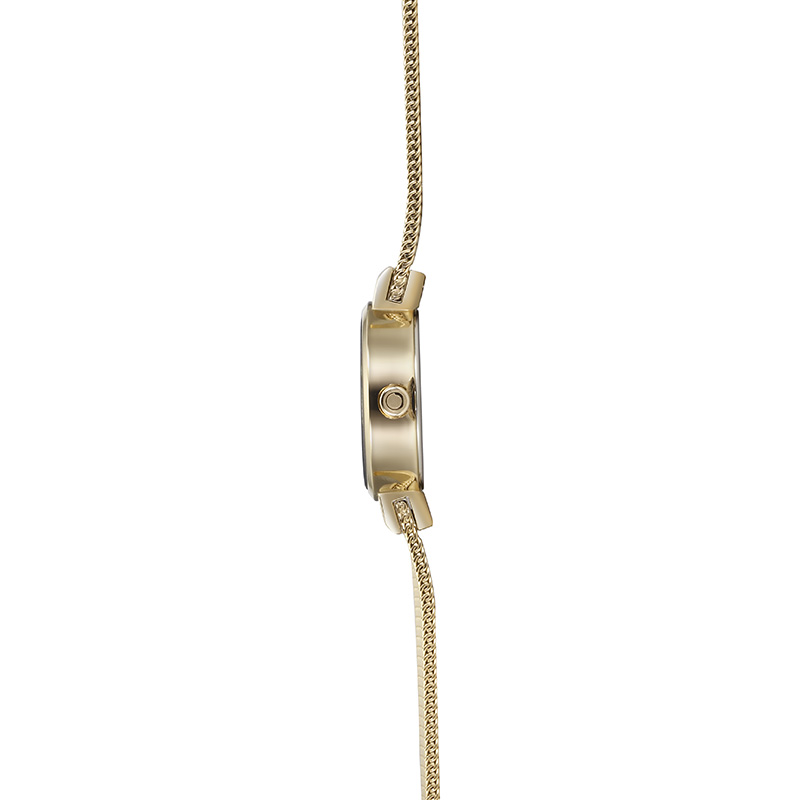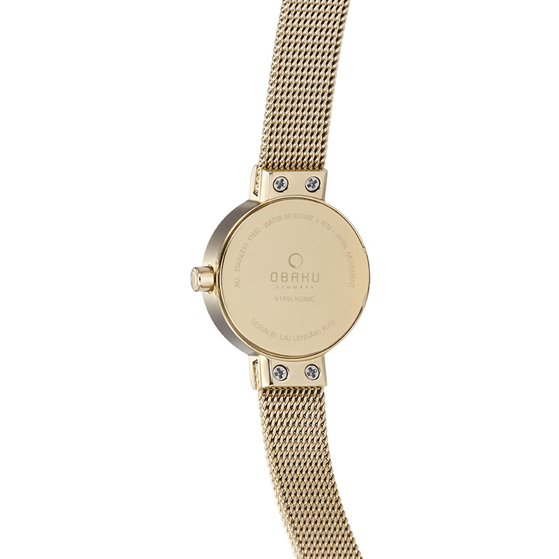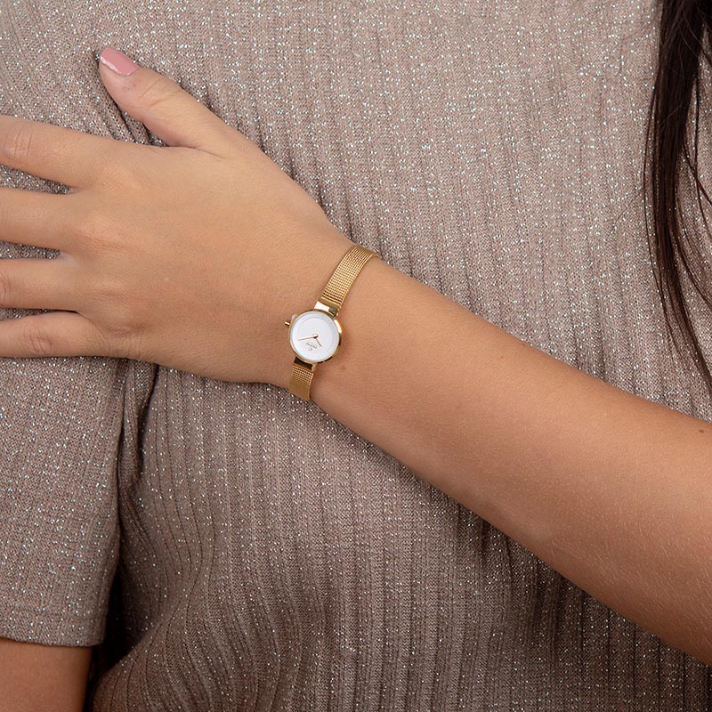 The Spire Gold is one of the lightest weighted timepieces which really enhances its usability. It consists of a gold coated stainless steel mesh bracelet and a white dial that is surrounded by a gold coated case and hands. It is the perfect timepiece for the modern woman who adores simplicity and an elegant design created by the Danish designer Lau Liengård Ruge.