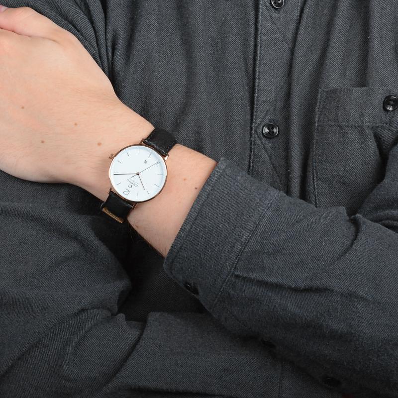 The Toft Coal combines three modern yet timeless colors. It features a smooth black calf leather strap that encircles a rose gold coated steel case with a white ceramic dial. The colors compliments each other by creating a timepiece that is a must-have in any man’s watch collection – designed by Christian Mikkelsen.