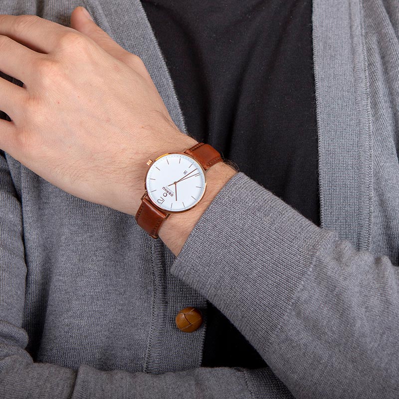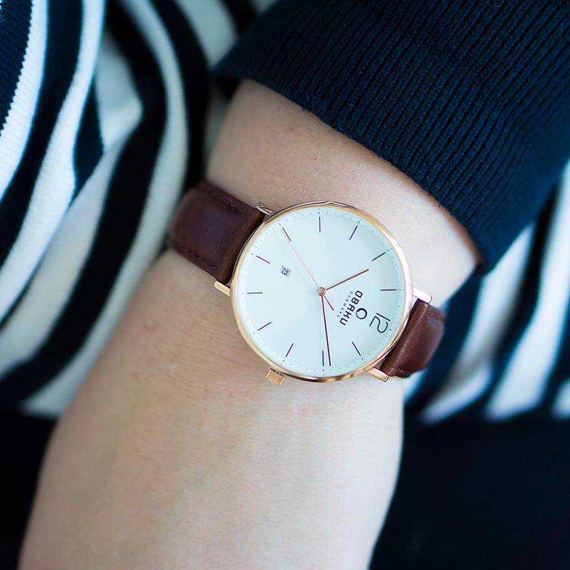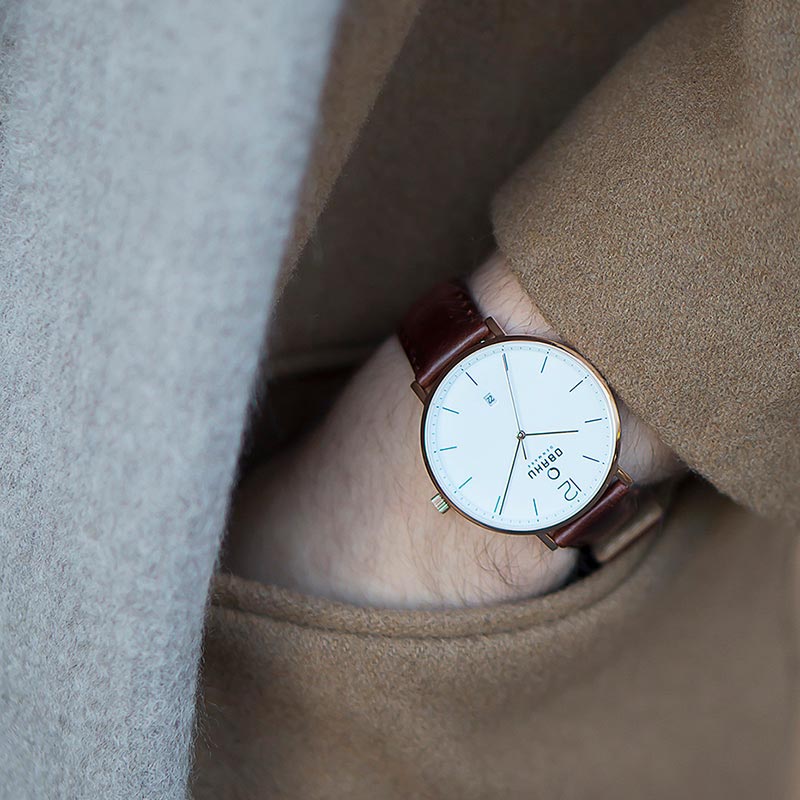 The Toft Mahogany is the perfect combination between quality and design created by the Danish designer Christian Mikkelsen. It has a brown calf leather strap that embraces the rose gold coated steel case and a white dial that has an elegant date function embedded in the movement. Our timepiece is classic and will suit any outfit – adding grace and style to it.