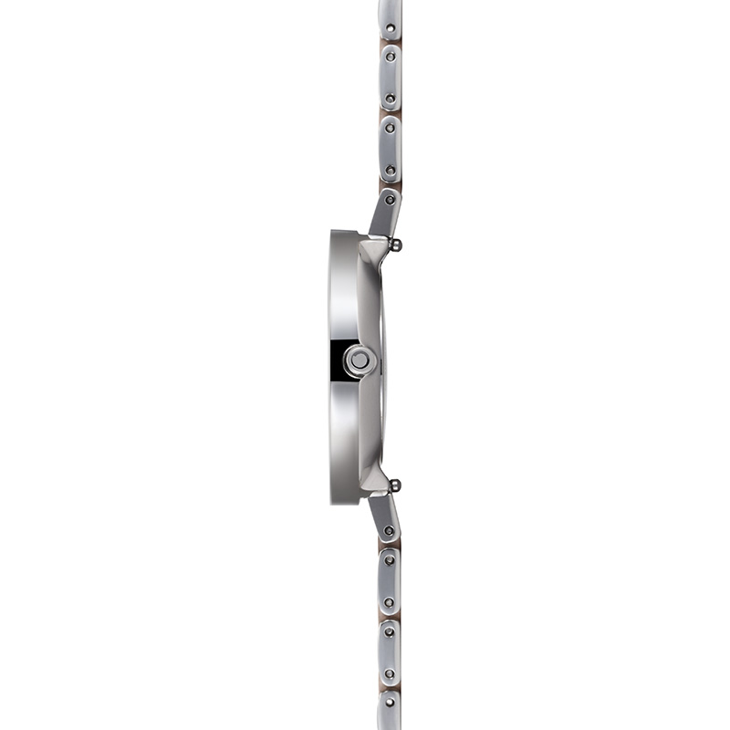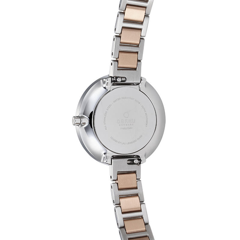 The Vand Peach is a feminine timepiece that focus on a classic design created by the Danish designer Christian Mikkelsen. Our watch features a matt finished silver-white coated dial that is framed by stainless steel. The dial features Roman figures as an elegant detail. The bracelet consists of a beautiful combination of silver and rose gold coated steel in duo-toned links that creates a bright and light expression on a classic design.