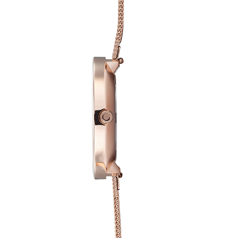 The Vand Rose is the perfect timepiece for the woman who loves the color rose gold combined with a simple and timeless design created by Christian Mikkelsen. The Vand Rose features a rose gold coated stainless steel mesh bracelet along with a rose gold coated steel case and a white dial that has Arabic figures embedded as a great detail to the simple design.