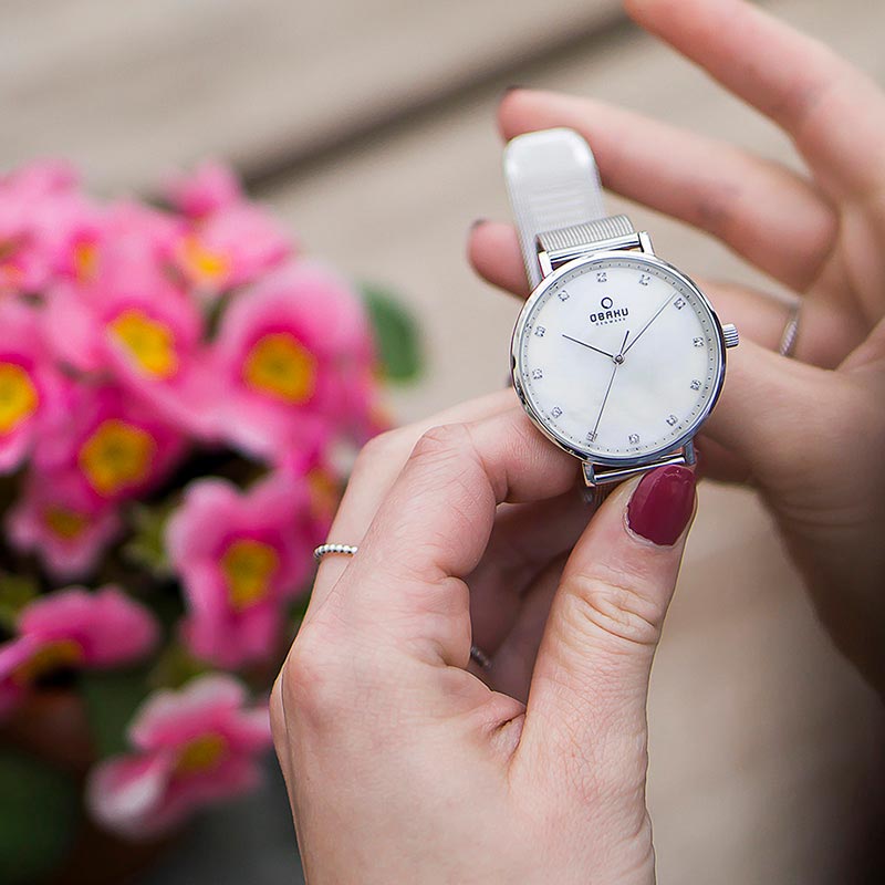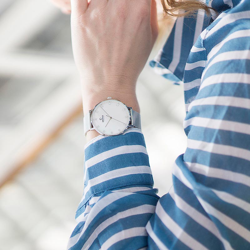 The Vest Steel is the perfect timepiece for the woman who wishes to combine simplicity with a feminine touch. Our watch has a beautiful stainless steel mesh bracelet and case that surrounds an elegant white mother of pearl dial with Swarovski crystals embedded. The Vest Steel is a classic design with a modern twist created by Christian Mikkelsen.
